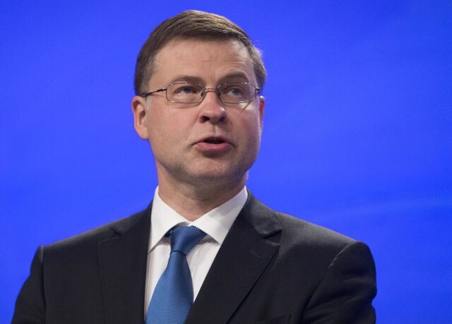 Вице-президент Еврокомиссии Валдис Домбровскис EPA/OLIVIER HOSLET