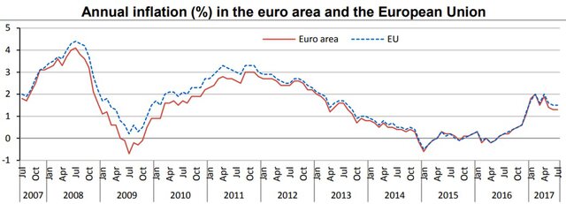 Потребительские цены в ЕС в июле выросли на 1,5% в годовом выражении и снизились на 0,3% по сравнению с предыдущим месяцем.
