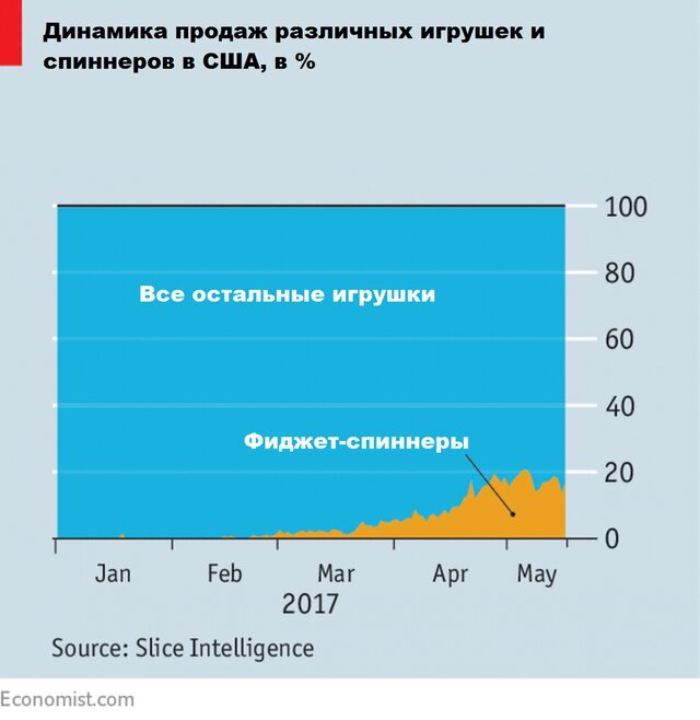 Это началось в Америке в феврале. К маю 20 самых продаваемых игрушек на Amazon были либо фиджет-спиннеры, либо фиджет-кубы.