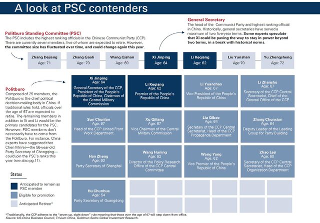 Бывшая фракция коммунистической молодежной лиги "Ху Цзиньтао" значительно сократилась за время нахождения Си у власти, а политическое влияние Цзян Цзэминя также значительно ослабло. А наставники, вышедшие на пенсию, вообще не участвуют в перестановках, в отличие от прошлой практики.