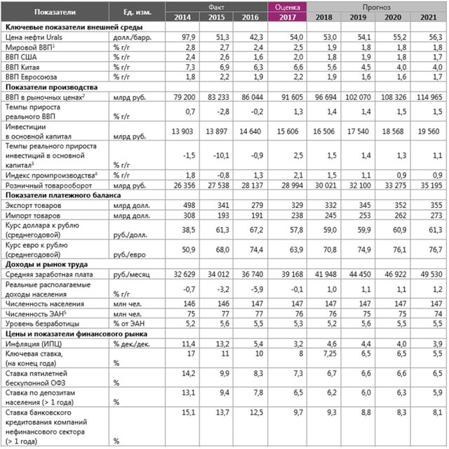 Обновление прогноза на 2018–2021 годы коснулось в основном степени влияния уровня рублевых процентных ставок на валютный курс и перспектив налоговой системы после 2018 г.