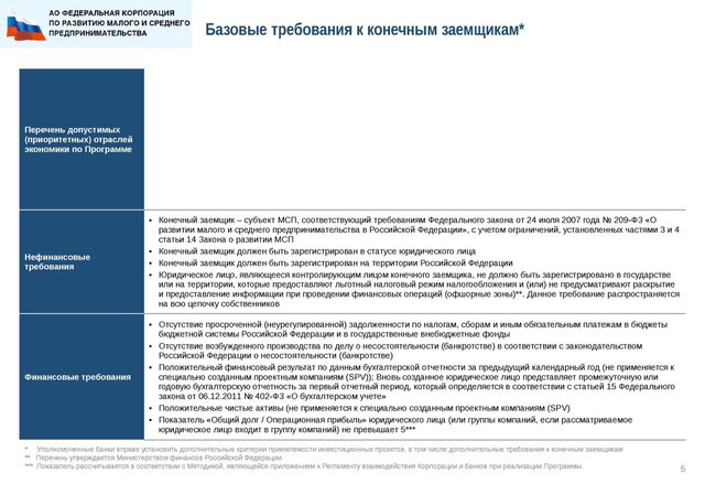 При этом маржа банков при выдаче таких кредитов малому бизнесу ограничена рамками 4%, среднему бизнесу - 3%. Корпорация МСП добавляет за поручительство 0,1%. В итоге заемщики могут кредитоваться по ставке 10,6% годовых (для средних предприятий) и 9,6% (для малых предприятий).