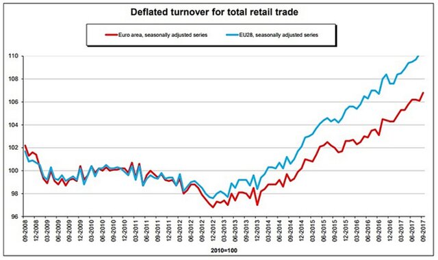 Розничные продажи в 28 странах ЕС в сентябре выросли на 0,3% по сравнению с августом и на 3,5% в годовом выражении.