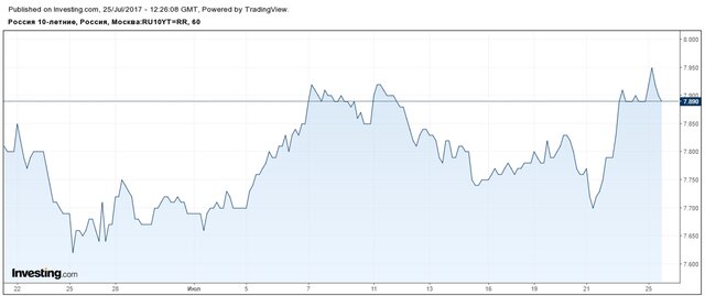 Продажи наблюдаются и на рынке ОФЗ. Доходности десятилетних ОФЗ приблизились к отметке в 8%.