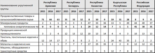 Роль сырьевого фактора также несколько снизилась во взаимной торговле стран ЕАЭС, хотя данный процесс не во всех странах союза протекал равномерно, а в ряде случаев наблюдались и обратные тенденции.