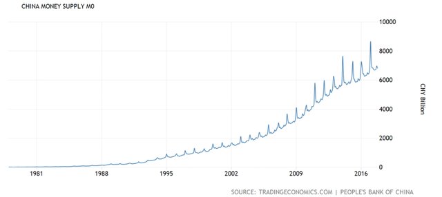 Аналогичная ситуация была с ликвидностью, в Китае не было никаких проблем с объемом предложения денег в экономике, денежная масса не только устойчиво росла, она постоянно ускоряла этот рост.