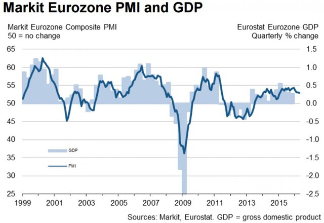 Индекс деловой активности в производственном секторе еврозоны в апреле снизился с 51,6 пункта до 51,5 пункта. PMI сферы услуг вырос с 53,1 пункта до 53,2 пункта.