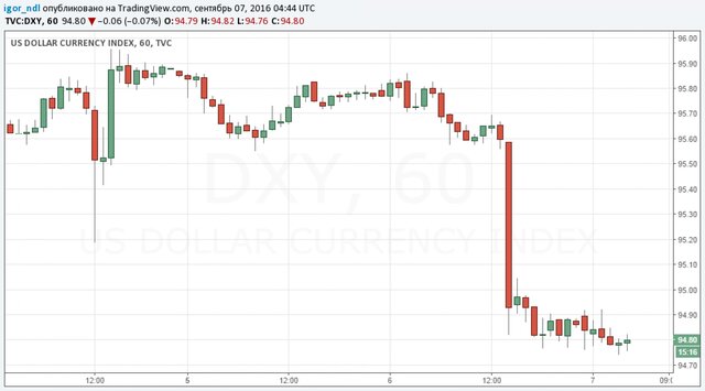Участники рынка быстро поняли, что тот локомотив, который тянул экономику (сфера услуг), останавливается и роль лидера играть более не может. Лучше всего реакцию участников рынка иллюстрирует обвальное падение доллара.