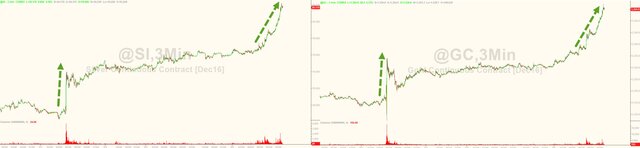 Бурным ростом отреагировали на вышедшую статистику и драгоценные металлы. И золото, и серебро показали самый сильный скачок цен за последние два месяца.