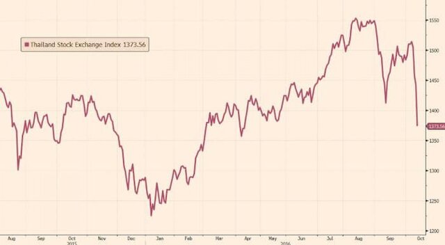Три дня назад тайская королевская семья подтвердила, что король находится в критическом состоянии, но особенно сильная реакция рынка последовала только сейчас, так как ранее инвесторы не увидели чего-либо опасного в сообщении о переливании крови, так как госпитализация короля в последние годы стала обычным явлением.