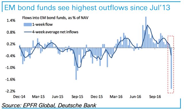 Распродажи происходили в основном на развивающихся рынках, включая Латинскую Америку. С поправкой на изменение курсов валют фонды, инвестирующие в развивающиеся рынки, зафиксировали максимальный отток с 2004 г.
