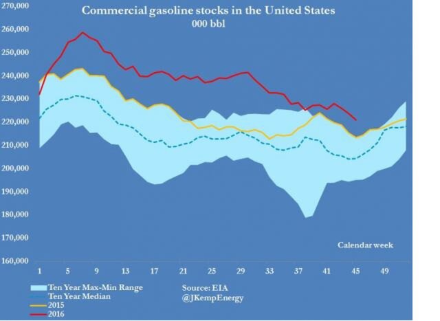 Стоит отметить, что запасы бензина в стране постепенно приходят в норму и уже лишь немного превышают средний показатель за 10 последних лет.