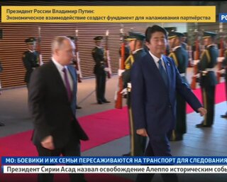 Второй день визита Владимира Путина в Японию. В пятницу переговоры с Синдзо Абэ продолжаются. Рано утром президентский самолет приземлился в Токио. У резиденции российского лидера встречал японский премьер-министр.