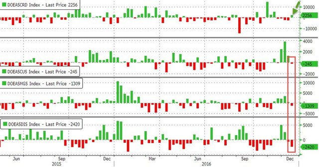 Затем вышли данные по запасам от Минэнерго США, и нефтяные цены перешли к полноценному снижению. Коммерческие запасы в Штатах вопреки ожиданиям показали максимальный рост за 5 недель.