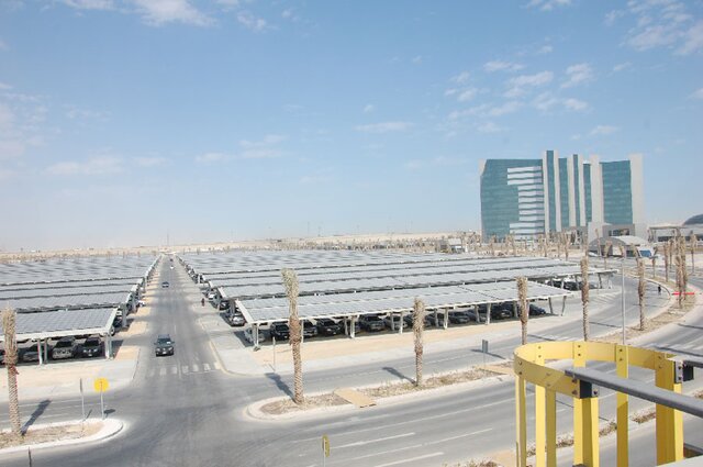 Единственная солнечная электростанция в Саудовской Аравии, которая вырабатывает 10 мегаватт, расположена на крыше автомобильной стоянки для сотрудников государственной нефтяной компании Saudi Aramco.