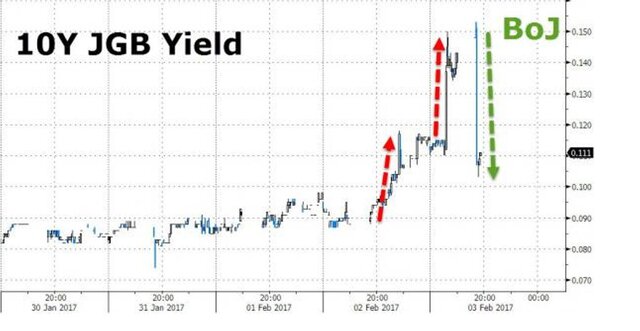 События на долговом рынке Японии сегодня развиваются крайне стремительно. Еще в начале торговой сессии трейдеры решили поиграть в центробанком в "кошки-мышки". Доходности 10-летних бондов росли на 30% и тестировали отметку 0,15%. Все закончилось быстро.События на долговом рынке Японии сегодня развиваются крайне стремительно. Еще в начале торговой сессии трейдеры решили поиграть в центробанком в "кошки-мышки". Доходности 10-летних бондов росли на 30% и тестировали отметку 0,15%. Но это безобразие продолжалось совсем недолго.
