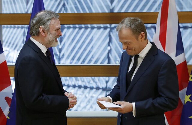 Посол Великобритании в ЕС сэр Тим Барроу доставил письмо, подписанное премьер-министром Великобритании Терезой Мэй, главе Евросовета в Брюссель.