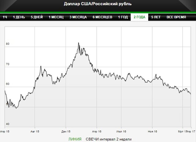Пара доллар/рубль расчетами "завтра" торговалась на Мосбирже в 18:35 мск на уровне 55,99 руб. (минус 62,25 коп. к закрытию среды) - впервые с июля 2015 г., евро/рубль - 60,06 (минус 86,75 коп.) - максимум с февраля.