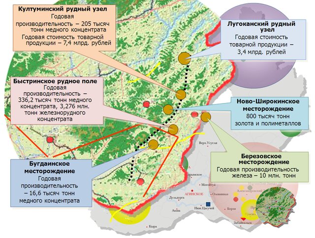 Предприятие сможет производить 66 тыс. тонн медного концентрата, 3,1 млн тонн железорудного концентрата и 219 тыс. унций золота в концентрате ежегодно. Срок эксплуатации месторождения - более 30 лет.