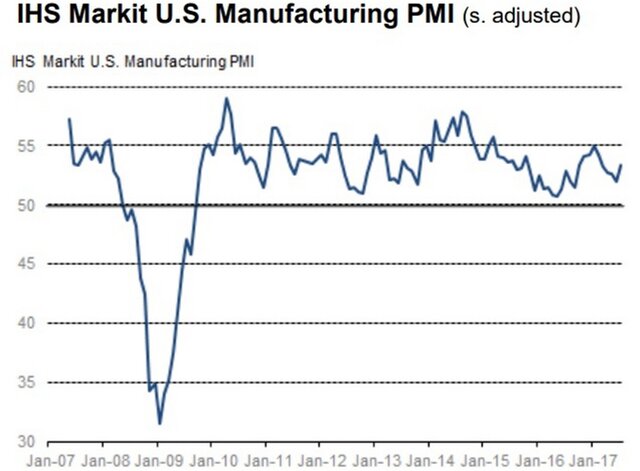 Показатель отразил максимальное улучшение операционных условий в производственном секторе США за четыре месяца. Значение индикатора ниже 50 пунктов отражает снижение активности, выше - рост активности.
