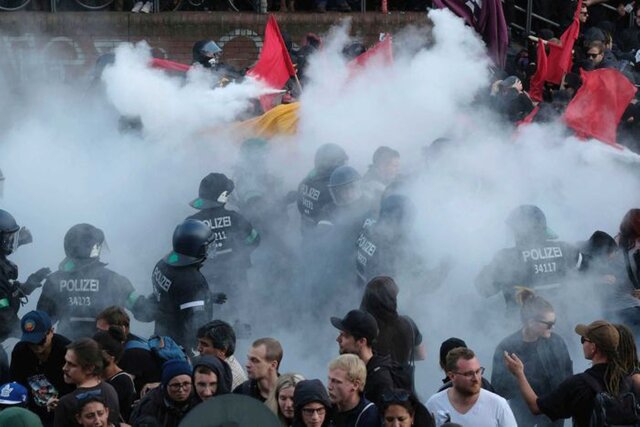 Столкновения с полицией начались еще до начала саммита G20, официально начавшегося 7 июля. Протестующие поджигают автомобили, мусорные баки, бьют витрины в магазинах, вступают в столкновения с полицией.