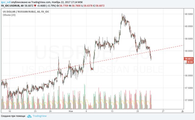Что касается технической картины, то в паре с долларом рубль сегодня пытается пробить линию тренда, которая ранее выступала линией сопротивления. Это видно на графике: