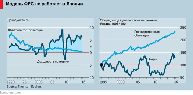Япония - наглядный этому примером. Доходность её государственных облигаций была низкой в течение двух десятилетий. Сделало ли это японские акции хорошим местом для инвестиций, как убеждают Бланшар и Ганьон? Совсем нет.
