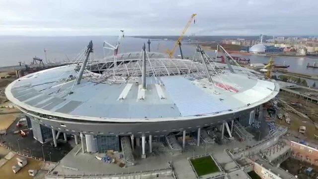 Стадион "Зенит-Арена" заложен в западной части Крестовского острова в 2007 г., проект трижды доделывали: в 2008, 2010 и 2013 гг.. Каждый раз стоимость возведения арены увеличивалась: с предполагаемых изначально 6,7 млрд руб. до возможных 43,8 млрд руб.
