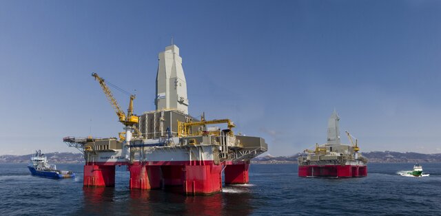 Плавучие полупогружные буровые установки (ППБУ) "Газпром флота" - "Полярная звезда" и "Северное сияние" прибыли из порта Яньтай (Китай) в российский порт Холмск для последующей работы на Киринском газоконденсатном месторождении.