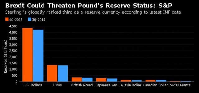 "Выход Соединенного Королевства из состава Европейского Союза может поставить под угрозу статус фунта стерлингов как резервной валюты из-за ограничения прямых иностранных инвестиций и других капитальных потоков. Страны, контролирующие резервные валюты, имеют существенную внешнюю и монетарную гибкость, которая поддерживает кредитоспособность правительства.