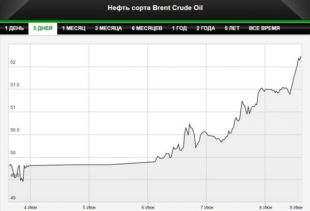 Котировка августовских фьючерсов на нефть марки Brent на лондонской бирже ICE Futures к 14:10 мск повысилась более чем на 1% - до $52,12 за баррель.