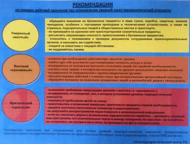 После произошедшего теракта, в большинстве областей Казахстане сроком на 40 суток введен "желтый" уровень террористической угрозы.