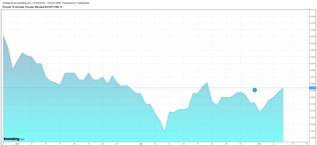 Стоит отметить, что российские ОФЗ снижаются, несмотря на рост нефтяных котировок. Накануне после выступления Владимира Путина в Стамбуле баррель смеси Brent подорожал на 3% и превысил отметку в $53. Российский рубль на этом фоне также обновил годовые максимумы, но, как уже было сказано ранее, долговые бумаги остались под давлением.