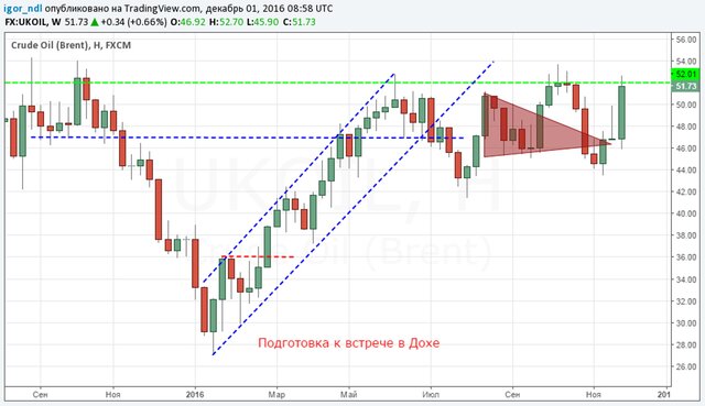 Сейчас баррель смеси Brent стоит почти $52, и этот уровень в целом можно считать комфортным для российской валюты. Однако не стоит забывать, что волатильность на нефтяном рынке очень и очень высокая, поэтому цена может очень быстро упасть. Казалось бы, особых поводов для падения сейчас нет, на рынке царит оптимизм, но ведь ОПЕК еще предстоит встреча со странами, не входящими в картель, и здесь тоже нужно договариваться.