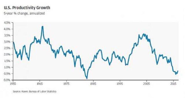 С 1948 года по 2000 год реальный ВВП на душу населения вырос на 2,3%; с 2000 года до 2016 год он вырос на 1%. Если бы за эти 17 лет он вырос на 2,3% вместо 1%, ВВП на душу населения составил бы 24%.На фоне низкого роста средние доходы населения в 2015 году были на 2,5% ниже, чем в 1999 году. Кроме того, процент семей среднего класса фактически сократился: в 1971 году 61% семей считались средним классом, в 2015 году – только 50%.