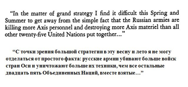 Стоит вновь напомнить слова Франклина Рузвельта, президента США, страны которая внесла свой вклад в победу над фашистской Германией, в том числе с помощью лендлиза (поставок техники, которые СССР оплачивал золотом), а также потеряла в войне около 640 тыс. человек (из них военные потери – примерно 400 тыс. человек). СССР сыграл решающую роль в войне, это неоспоримо. Сегодня можно наблюдать отдельные попытки заработать "политические очки" на Победе, превратить ее в некий "бренд".