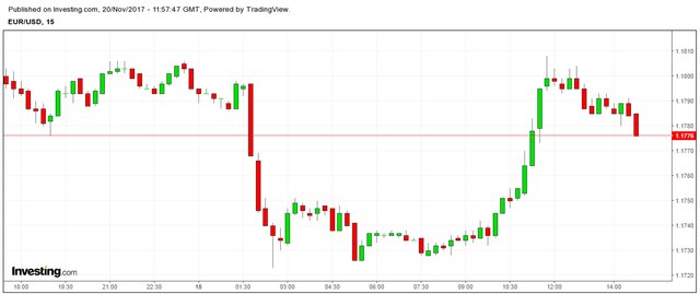 Сегодня утром, например, участников торгов застала врасплох новость о провале канцлера Германии Ангелы Меркель в попытке создать коалиционное правительство. На этом фоне сильнее всего реагировал валютный рынок, где единая европейская валюта теряла около 0,5%, однако уже днем котировки евро вернулись на уровень закрытия пятницы. Сейчас все ждут дальнейших новостей из Германии.