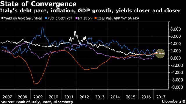 Частично этому способствует экономика, которая выросла 10-й квартал подряд и сохранила темпы роста в последнем квартале. Кроме того, стране помогает ускорение инфляции и падение доходности облигаций. Сочетание этих факторов приближает правительство к снижению нагрузки.