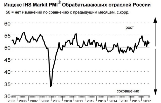Индекс деловой активности (Purchasing Managers Index, PMI) в промышленности России в сентябре 2017 г. вырос с августовских 51,6 до 51,9 пункта, свидетельствуют данные IHS Markit.