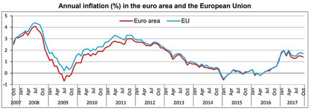 Потребительские цены в Евросоюзе в октябре выросли на 1,7% в годовом выражении и на 0,1% по сравнению с предыдущим месяцем.
