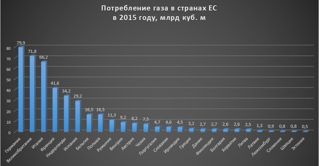 Источник: Eurogas preliminary data for 2015; * В состав ЕС входят также Кипр и Мальта, данные по которым не представлены в материалах Eurogas