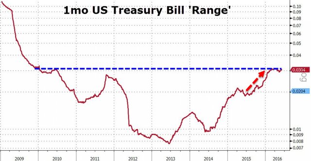 Затем, как известно, Федрезерв начал давать какие-то непонятные прогнозы, ситуация в экономике ухудшилась, а доверие к регулятору начало стремительно падать. Вот так выглядит динамика доходности месячных векселей. Очевидно, что турбулентность возрастает с каждым днем.