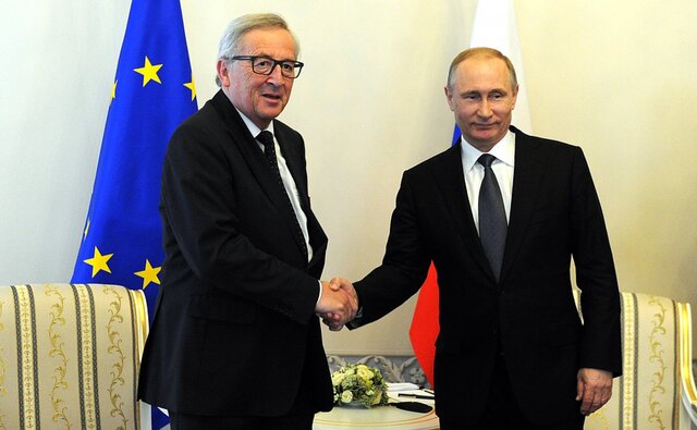 "Господин президент, я прибыл в Россию, потому что хотел увидеть Вас. Некоторые в Европе, конечно, не были согласны с такой идеей, но мне она понравилась. Потому что как раз в тот момент, когда между нами возникают проблемы, мы должны встречаться и разговаривать", - подчеркнул Юнкер во время встречи с Путиным.