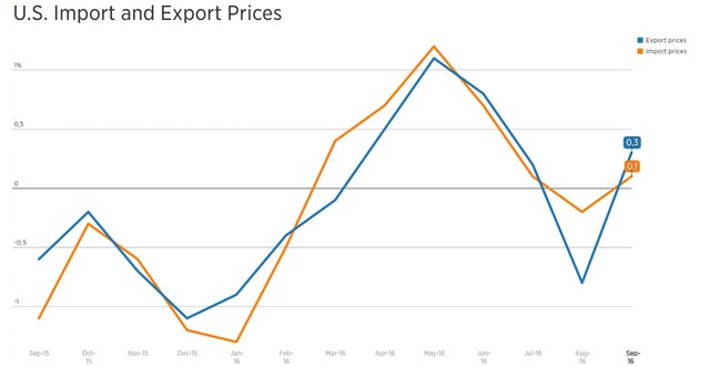 Импортные цены на нефть в сентябре выросли на 1,2% после снижения на 3% в августе. Цены на импорт без учета нефти не изменились второй месяц подряд. Импортные цены на продукты питания увеличились на 0,6%.
