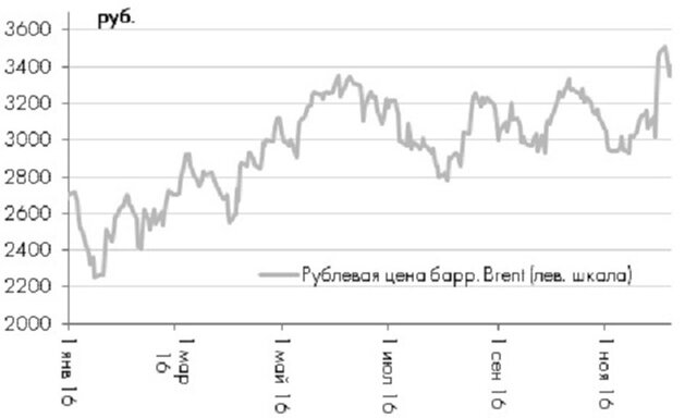 Мы ожидаем снижения рублевой цены на нефть (в частности, укрепления рубля при стабильной нефти) вследствие возникновения избытка валютной ликвидности на счетах Роснефтегаза, которая постепенно может конвертироваться в рубли (для погашения той оставшейся части рублевых средств, которых не было в наличии на момент сделки). Отметим, что в плане бюджета на 2017 г. рублевая цена нефти предполагается на уровне 2700 руб./барр. Urals (~2870 руб./барр. Brent, тогда как сейчас она составляет 3373 руб./барр.).