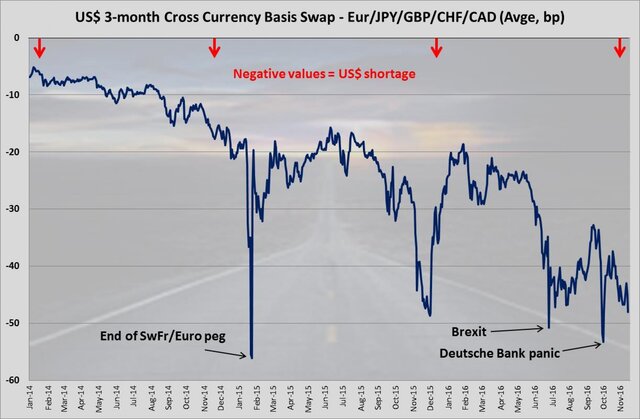 Чем значение ниже, тем больший предполагается структурный дефицит доллара и более сильные проблемы с ликвидностью долларов на рынках финансирования.