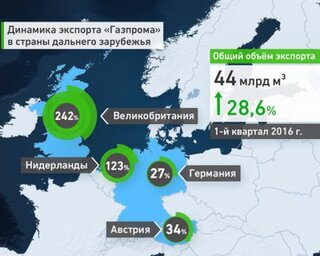 В 2015 г. "Газпром" поставил в дальнее зарубежье 158,56 млрд куб. м газа. Оценка экспорта на 2016 г. составляет от 166 млрд до 170 млрд куб. м газа.
