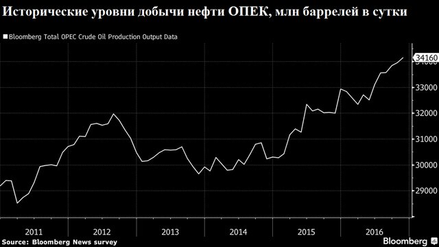 Тем не менее, по расчетам Bloomberg News, основанных на данных ОПЕК, в 2017 г. почти не будут сокращаться рекордные запасы нефти, даже если к соглашению присоединятся страны, не входящие в картель.