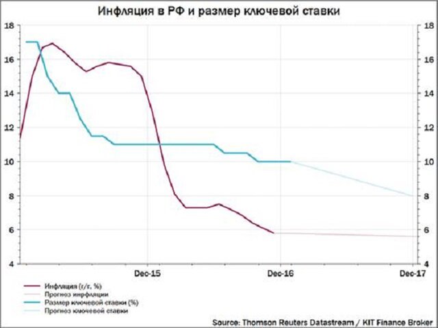 Банк России сохранил размер ключевой ставки. Денежно-кредитная политика будет оставаться довольно жесткой в течение следующего года. ТНо оридор депозитной и кредитной ставок сместится вниз.Центральный Банк России на последнем заседании 2016 г. сдержал свое обещание и сохранил размер ключевой ставки на уровне 10%. Регулятор держит паузу с сентябрьского заседания и может вернуться к смягчению денежно-кредитной политики в первом полугодии 2017 г. при условии наличия "тенденции к устойчивому снижению темпа роста потребительских цен". Таким образом, всего за 2016 г. ЦБ снизил ключевую ставку на 1% (или 100 б.п.), - отмечает в статье Анна Устинова, ведущий аналитик ИК "КИТ – Финанс брокер".
