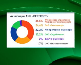Банк "Пересвет" зарегистрирован 13 октября 1992 г. и, по данным ТАСС, исторически связан с Московской патриархией. Около 36% акций банка принадлежат религиозной организации "Финансово-хозяйственное управление Русской православной церкви (Московский патриархат)", 13% - у ООО "Содействие", 24,4% - у АО "Экспоцентр".